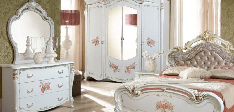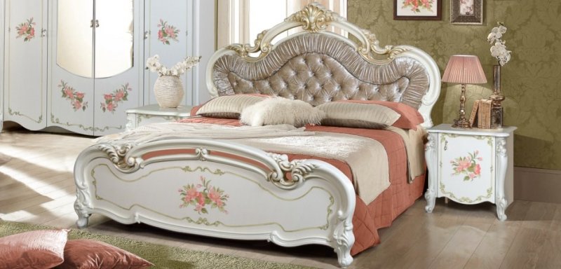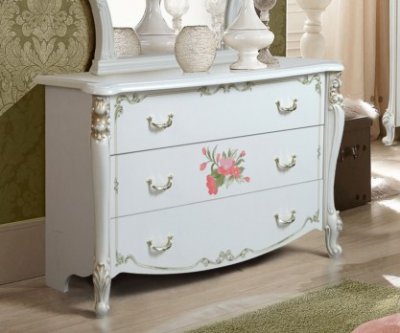Коллекция Альба – это романтика и очарование Прованса, весеннее настроение, игривость цветочного декора, классический дизайн. В производстве использована ДСП 18 мм европейского стандарта Е 1 в фасадах и корпусах производства Swiss Krono Group, итальянская фурнитура, петли FGV, ручки Cosmov. Столешницы комодов и прикроватных тумб выполнены из МДФ 22мм. Изголовье кровати декорировано тканью. Коллекция лакированная - 3 слоя глянцевого полиуретанового лака, а также применяется 3- цветная шелкография. Спальное место – 1800x2000 мм.