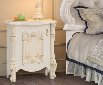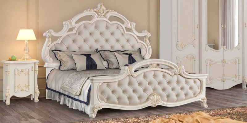 Рафаэлла – Хит продаж среди коллекций фабрики Диа Мебель. Спальный гарнитур Рафаэлла отличает воздушность и элегантность дизайна, утонченный декор, высокое качество изготовления. В производстве использована ДСП 18 мм европейского стандарта Е 1 в фасадах и корпусах производства Swiss Krono Group, итальянская фурнитура, петли FGV, ручки Cosmov. Столешницы комодов и прикроватных тумб выполнены из МДФ 22мм. Коллекция матовая. При декорировании применяется покрытие техникой «патина», ручная роспись. Спальное место кровати – 1800*2000 мм.