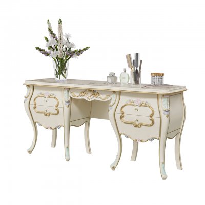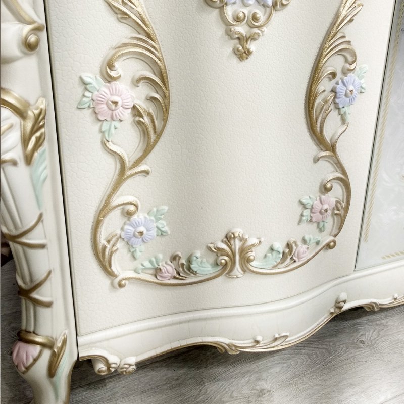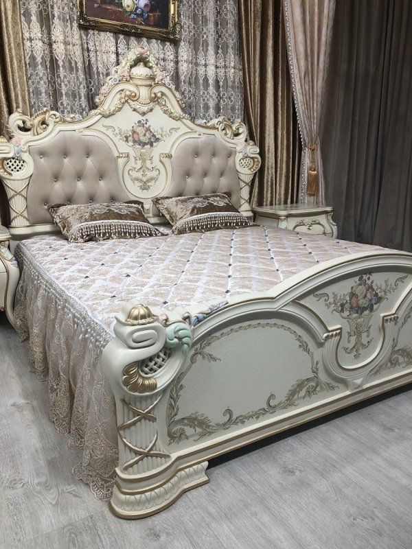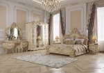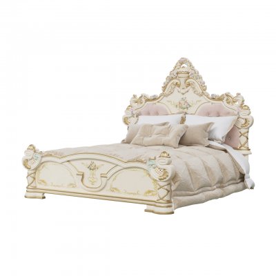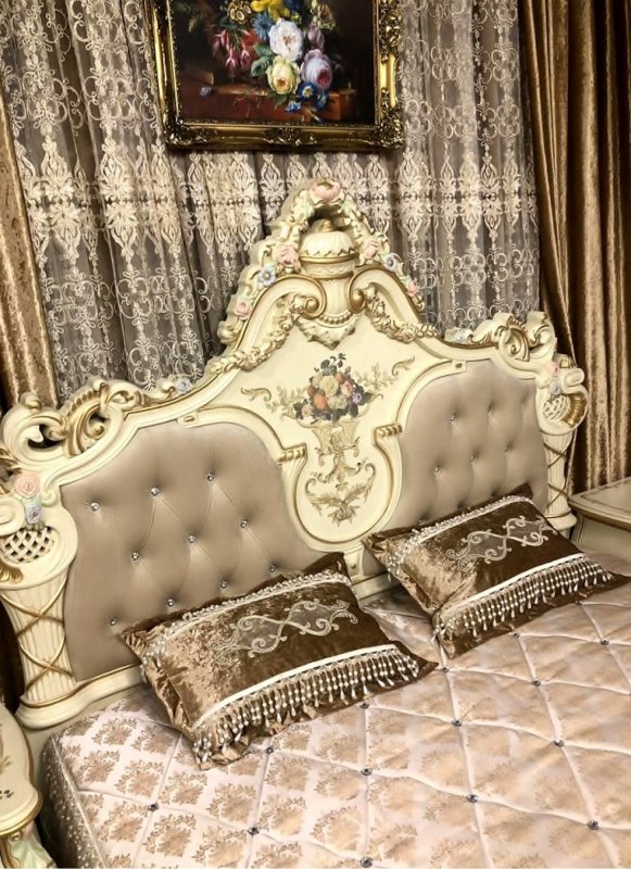 Спальня Людовик в цвете - Слоновая кость кракелюр (искусственное старение) с уникальной технологией 5-ти слойного покрытия итальянскими лаками, ручная роспись резных элементов в стиле Барокко.