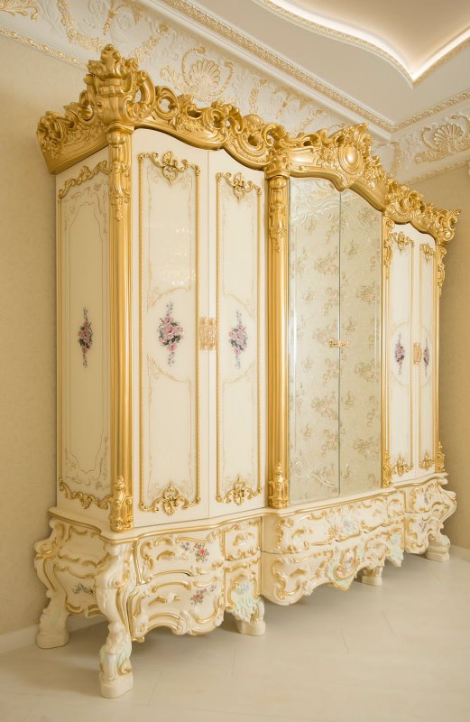 Комплект 6-и дверный шкаф с зеркалом «Барокко Люкс» слоновая кость / золото