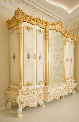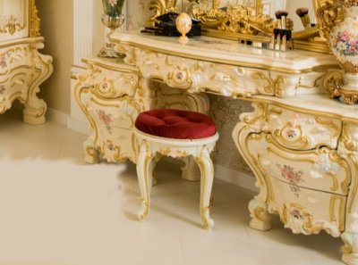 Коллекция спален БАРОККО ЛЮКС Слоновая кость от Фабрики Мэри включает в себя кровать с мягкой спинкой и удобным матрасом, шкаф для одежды, комод и тумбочки. Все элементы коллекции ЛЮДОВИК отличаются высоким качеством исполнения и продуманным дизайном. Они создадут в вашей спальне атмосферу уюта и комфорта.