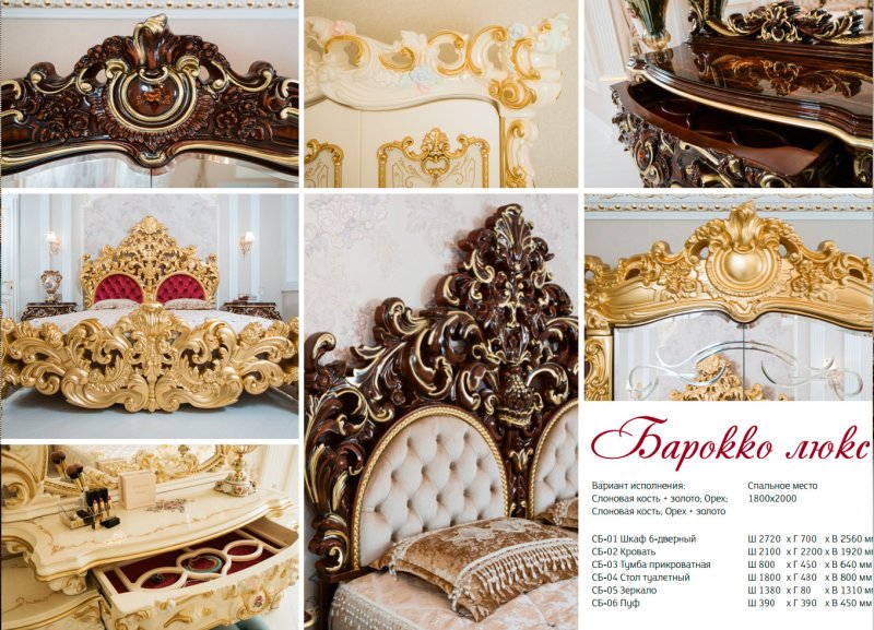 Посетите наш сайт и ознакомьтесь с нашим ассортиментом спален. Мы уверены, что вы найдете у нас то, что ищете. Заказывайте спальню БАРОККО ЛЮКС от Фабрики Мэри и получайте гарантированно высокое качество и профессиональный сервис!