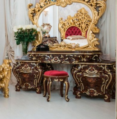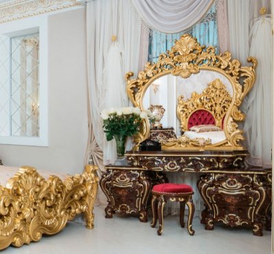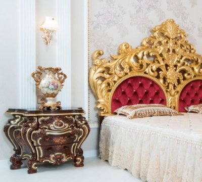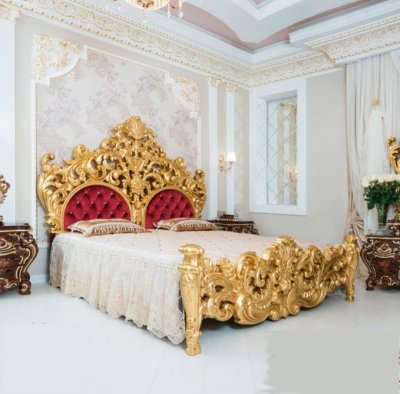 Коллекция спален БАРОККО ЛЮКС Орех Золото от Фабрики Мэри включает в себя кровать с мягкой спинкой и удобным матрасом, шкаф для одежды, комод и тумбочки. Все элементы коллекции ЛЮДОВИК отличаются высоким качеством исполнения и продуманным дизайном. Они создадут в вашей спальне атмосферу уюта и комфорта.