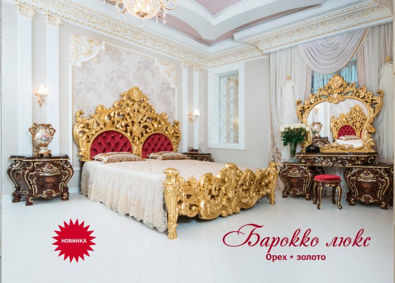 Спальня БАРОККО ЛЮКС Орех Золото от Фабрики Мэри - это коллекция спален, которая сочетает в себе изысканный дизайн, высокое качество и комфорт. Вся мебель сертифицирована и изготавливается только из безопасных и экологически чистых материалов.