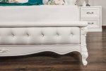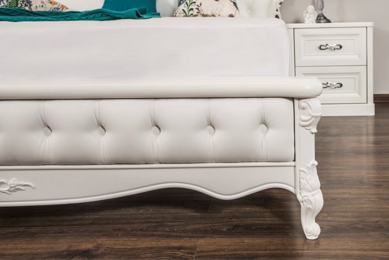 Изножье: Экокожа белая матовая, каретная стяжка, пуговицы из экокожи;