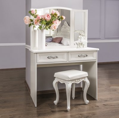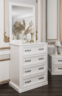 Комод обьединяет красоту с практичностью и представлен в двух вариантах. Модное дизайнерское зеркало в комплекте с туалетным столиком станет любимым уголком хозяйки спальни.
