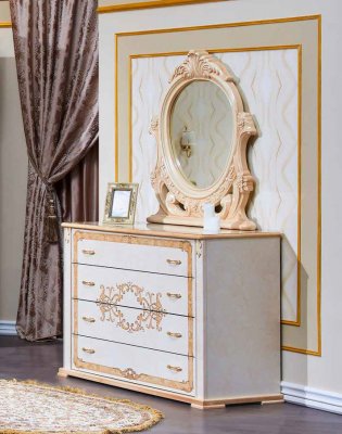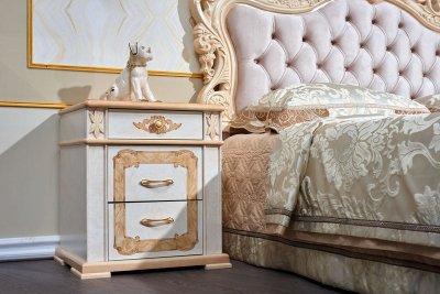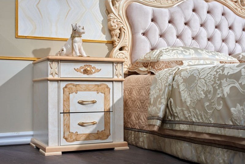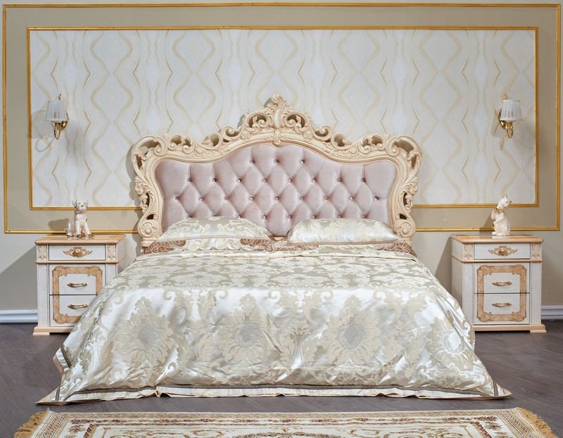Спальня Аделаида - это элегантная, классическая коллекция, которую можно отнести к настоящему образцу элитной мебели. Гарнитур, выполненный в классическом бежевом оттенке, демонстрирующий всю роскошь дерева, никогда не выйдет из моды. Особый шарм спальному месту придает утонченное резное изголовье, декорированное мягкой обивкой. При помощи данного набора мебели любая спальня наполнится нотками королевского богатства и элегантности.