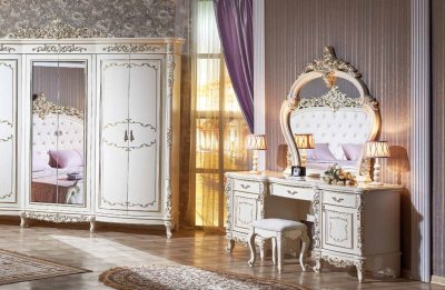 Классический кремовый цвет, вычурные резные элементы и золотой декор – этот набор буквально создан для настоящих аристократов. Коллекции «Версаль» – поистине королевская мебель, украшенная декоративной резной кромкой, исполненная в нежных тонах – она буквально завораживает. Коллекция украсит ваш дом, вдохнет в него нотки роскоши и сделает его воплощением мечты.