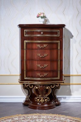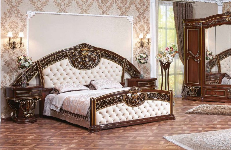 Достойная, изящная коллекция – прекрасный образец чисто классического стиля. Все элементы декорированы ажурной резьбой. Благородный цвет покрытия притягивает взгляды ценителей средневековой классики. Коллекция «Марелла» изготавливается в трех исполнениях: кремовый цвет с золотым и серебряным патинированием, темный орех с золотой патиной. Неизменным украшением коллекции являются гнутые декоративные элементы.