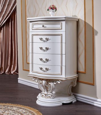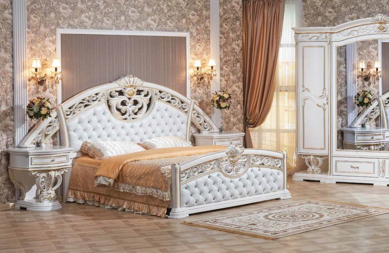 Достойная, изящная коллекция – прекрасный образец чисто классического стиля. Все элементы декорированы ажурной резьбой. Благородный цвет покрытия притягивает взгляды ценителей средневековой классики. Коллекция «Марелла» изготавливается в трех исполнениях: кремовый цвет с золотым и серебряным патинированием, темный орех с золотой патиной. Неизменным украшением коллекции являются гнутые декоративные элементы.