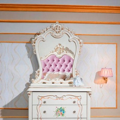 Мебельная коллекция «Шанель» – это поистине роскошный гарнитур, который можно поставить в дом даже особам царских кровей. Коллекция отличается витиеватыми формами, изогнутыми фасадами и мягкостью линий, сочетанием флористических узоров с роскошной золотой отделкой, мягкой обивкой изголовья кровати. Детская коллекция отличается обивкой кровати в приятном лавандовом цвете. Любой узор на мебели, каждая ручка на комоде или шкафу указывает на элегантность набора.