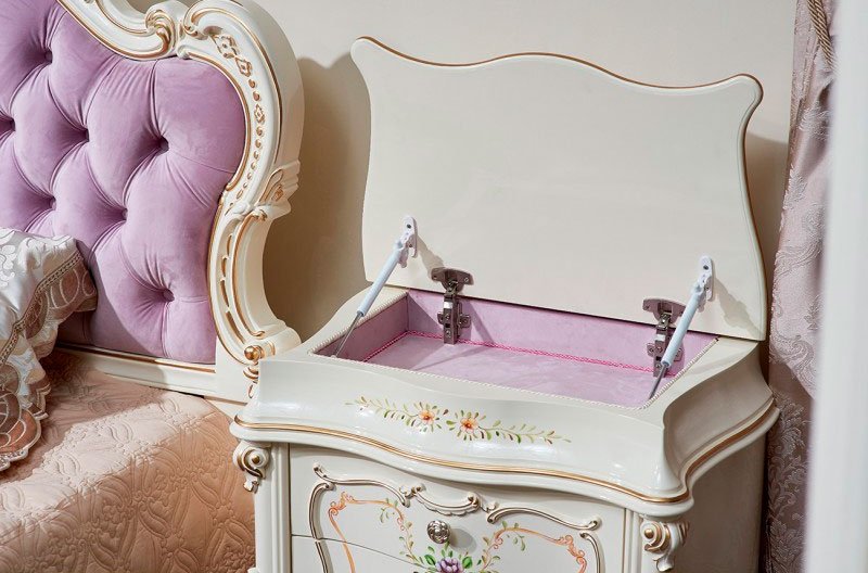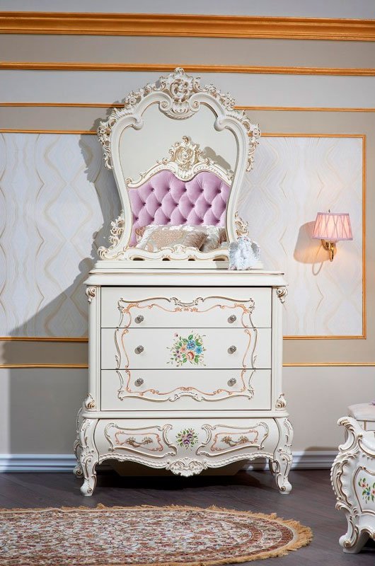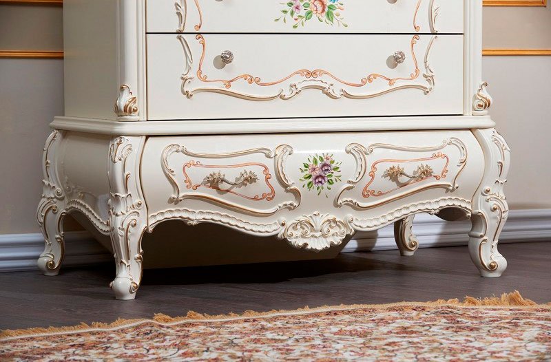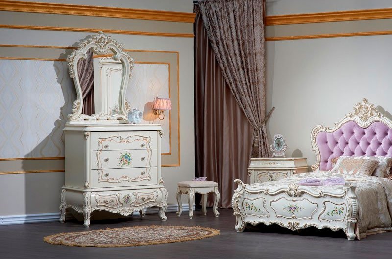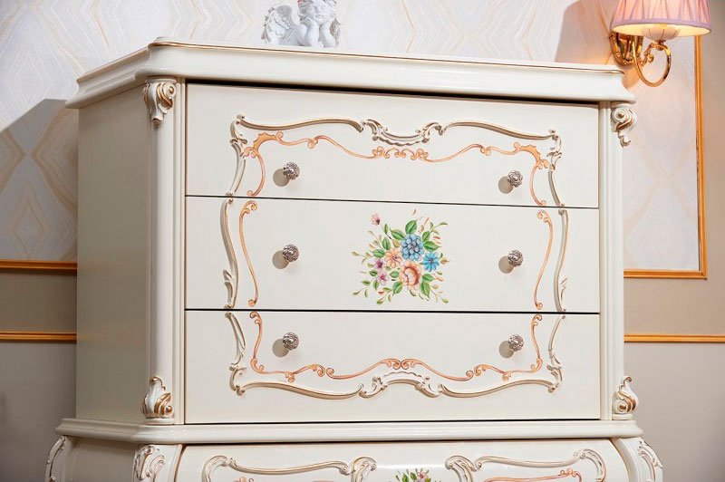Мебельная коллекция «Шанель» – это поистине роскошный гарнитур, который можно поставить в дом даже особам царских кровей. Коллекция отличается витиеватыми формами, изогнутыми фасадами и мягкостью линий, сочетанием флористических узоров с роскошной золотой отделкой, мягкой обивкой изголовья кровати. Детская коллекция отличается обивкой кровати в приятном лавандовом цвете. Любой узор на мебели, каждая ручка на комоде или шкафу указывает на элегантность набора.