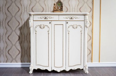 В шкафчик с распашной дверцей удобно убирать лишнюю обувь.