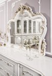 Ящики и дверцы украшены прочной фурнитурой, которая отличается длительным сроком эксплуатации. Фасады мебели украшены изящной резьбой с золотистым покрытием — такой симбиоз выглядит элегантно. Гарнитур изготавливается в Ставрополе, потому его можно заказать с услугой самовывоза или с доставкой в любую точку России.