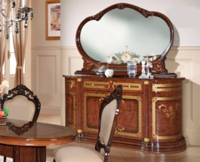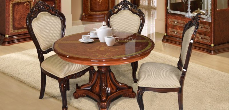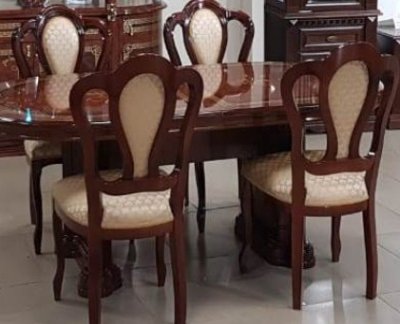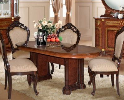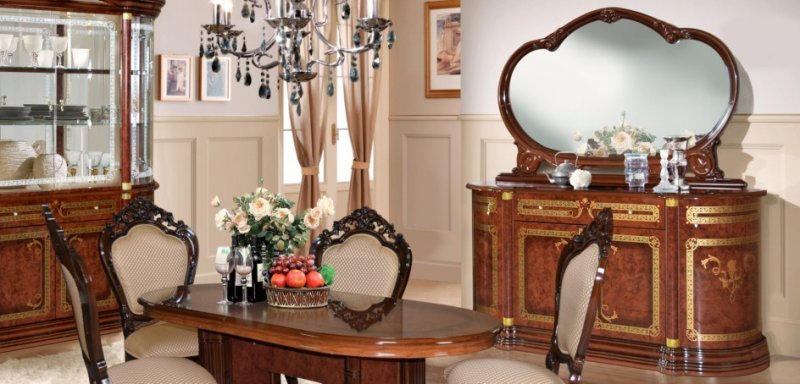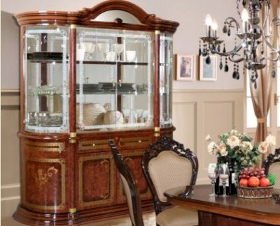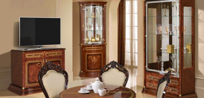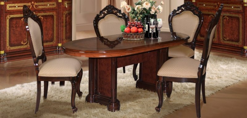 Шикарная коллекция гостиной "Роза"в цвете орех неповторимо впишется в ваш интерьер. Гнутые лакированные фасады с элементами шелкографии придают классический вид залу, а большие стеклянные двери делают элементы гостиной воздушными и объёмными. Создать индивидуальные и неповторимые решения в интерьере Вашего дома поможет широкий ассортимент модулей, где каждый элемент продуман до мелочей. Встроенная подсветка позволит расставить световые акценты на внутреннем наполнении витрин. Столы овальной формы подходят как для повседневных обедов, так и для торжественных ужинов. Стулья изготовлены из заготовок бука, обиты тканью, окрашены в цвет гостиной и покрыты полиуретановым лаком.
