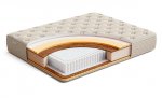 Комфортные слои модели созданы комбинацией натурального латекса и латексированной кокосовой койры. Наполнители устойчивы к нагрузкам. Они надежно поддерживают позвоночник во время сна и снимают статичную нагрузку, которая накопилась за день. Материалы полностью безопасны для здоровья, так как не вызывают аллергии. Они хорошо вентилируются и не накапливают пыль и влагу.