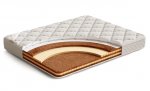 Отсутствие пружинного блока восполняется мягким латексом, который придает упругость жестким слоям кокосовой койры.