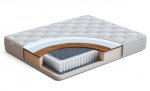 Одна сторона матраса состоит из увеличенного слоя латексированной кокосовой койры и тонкого слоя эластичной пены Elastic Foam, что обеспечивает повышенную жесткость. Вторая сторона матраса мягкая, и состоит из комбинации ортопедической пены Flex Foam и анатомической пены Elastic Foam.