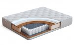 Наполнители представлены слоем латексированной кокосовой койры, придающей матрасу необходимую жесткость. А также комбинацией слоев ортопедической пены Flex Foam и анатомической пены Elastic Foam. Эластичная пена идеально нивелирует жесткость кокосовой койры. Благодаря сочетанию двух ее видов удается добиться не только ортопедических свойств, но и высокого уровня комфорта, когда поверхность точно подстраивается под все изгибы тела человека.