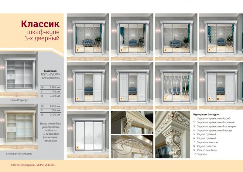 Купить шкаф-купе КЛАССИК 3-х дверный Белый/Серебро, шкаф-купе КЛАССИК 3-х дверный Слоновая кость/Золото от Фабрики Мэри и получить комфорт и уют в своем доме